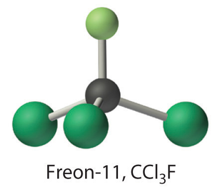 Calculate the molecular mass of trichlorofluoromethane, also known as Freon-11, whose condensed structural formula is CCl3F. Until recently, it was used as a refrigerant. The structure of a molecule of Freon-11 is as follows: