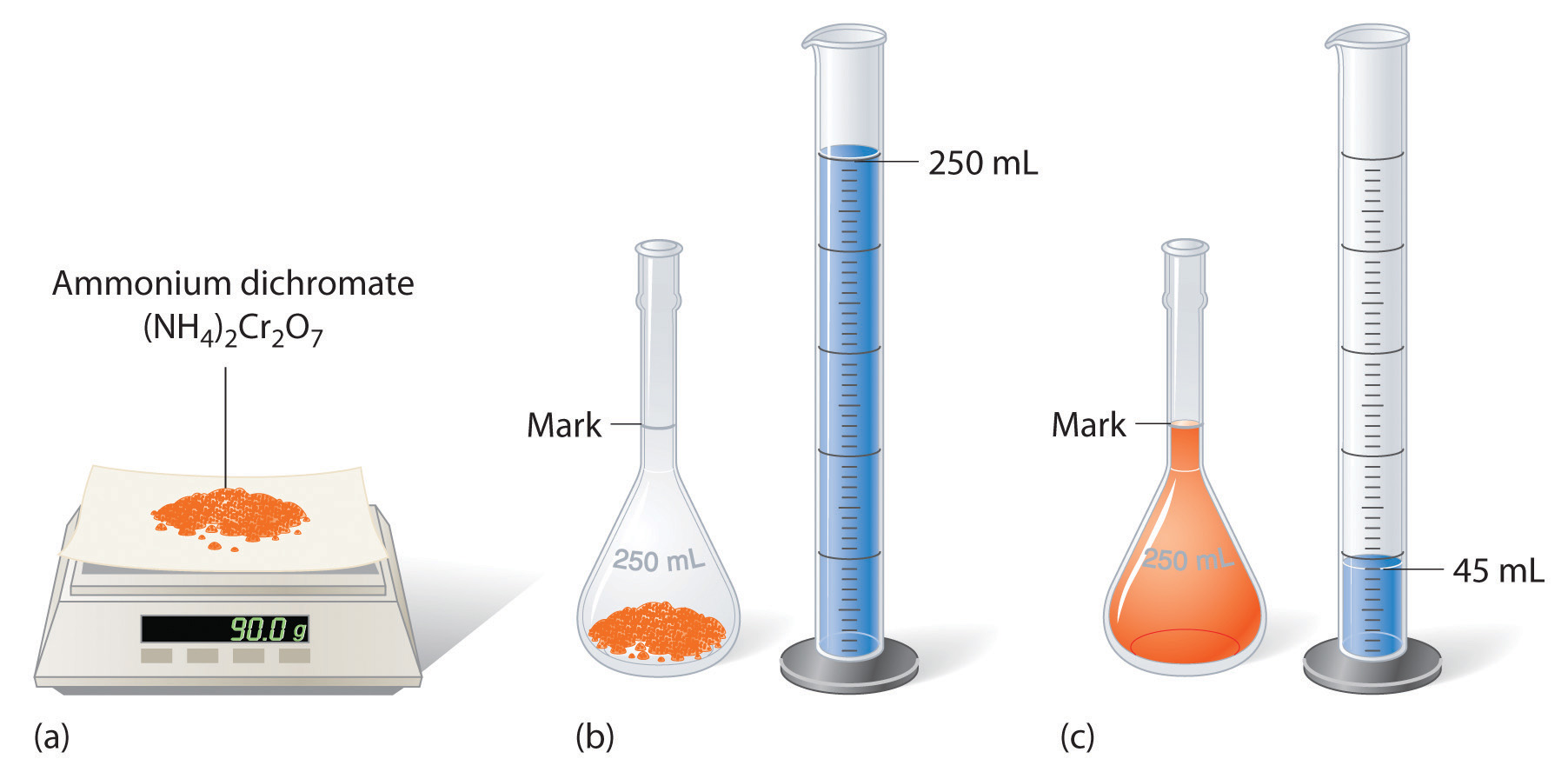 Figure 4.7 Preparation of 250 mL of a Solution of (NH4)2Cr2O7 in Water