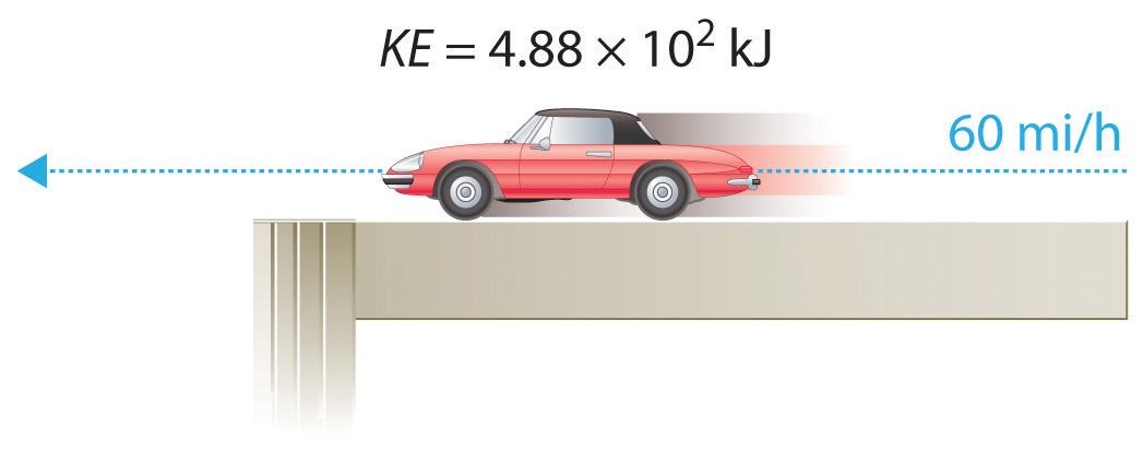 For example, the kinetic energy of a 1360 kg (approximately 3000 lb) automobile traveling at a velocity of 26.8 m/s (approximately 60 mi/h) is
