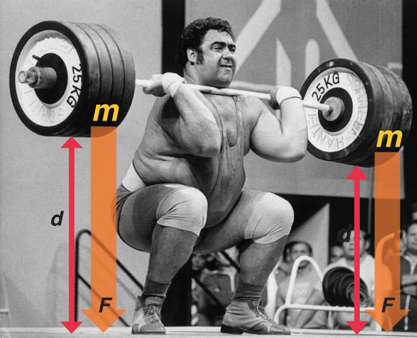 One definition of energyThe capacity to do work. is the capacity to do work. The easiest form of work to visualize is mechanical workThe energy required to move an object a distance when opposed by a force : (Figure 5.3 "An Example of Mechanical Work"), which is the energy required to move an object a distance d when opposed by a force F, such as gravity: