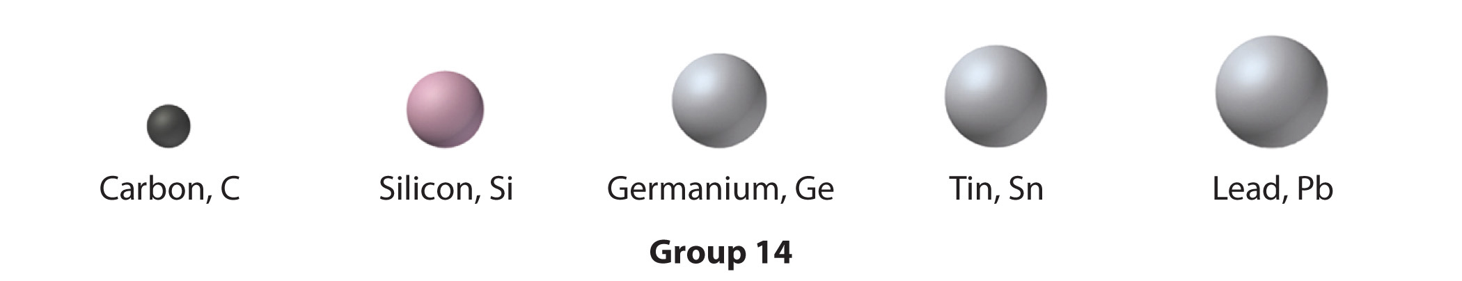 The group 14 elements straddle the diagonal line that divides nonmetals from metals. Of the elements in this group, carbon is a nonmetal, silicon and germanium are semimetals, and tin and lead are metals. As a result of this diversity, the structures of the pure elements vary greatly.