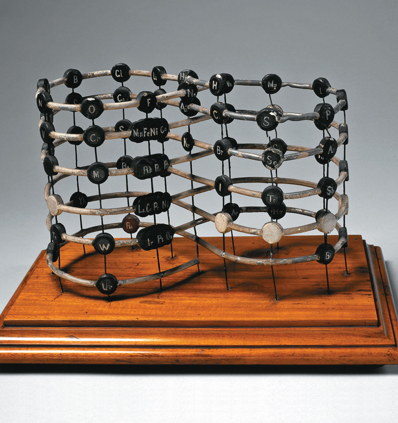 Crookes’s Spiral Periodic Table, 1888. Created by Sir William Crookes (1832–1919), the spiral represents the relationships between the elements and the order of evolution of the elements from what he believed to be primal matter.