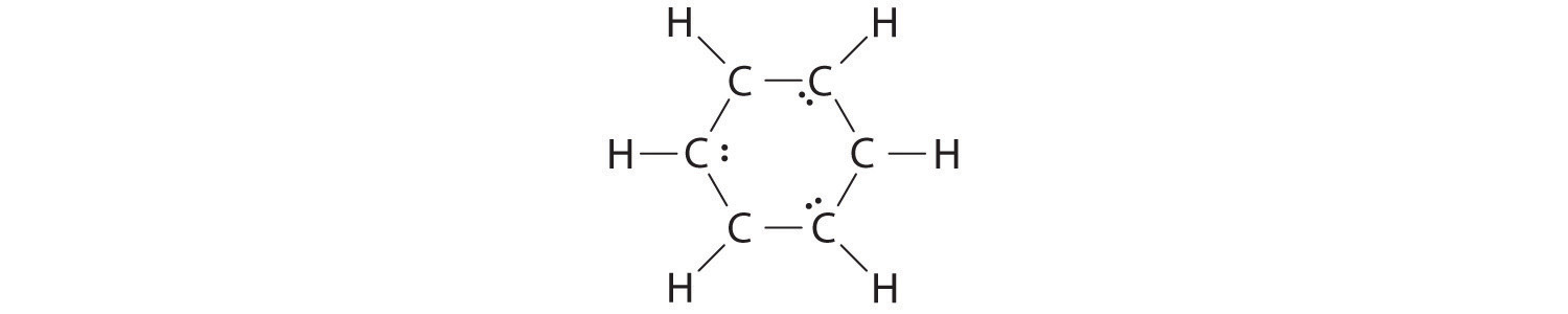 B Subtract this number from the total number of valence electrons in benzene and then locate the remaining electrons such that each atom in the structure reaches an octet.