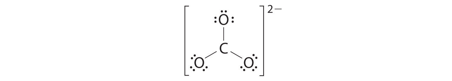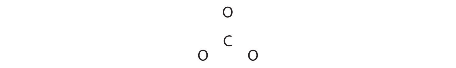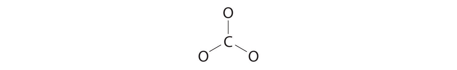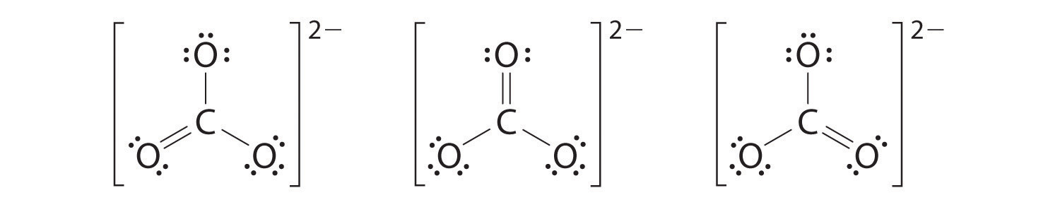 Like ozone, the electronic structure of the carbonate ion cannot be described by a single Lewis electron structure. Unlike O3, though, the actual structure of CO32− is an average of three resonance structures.