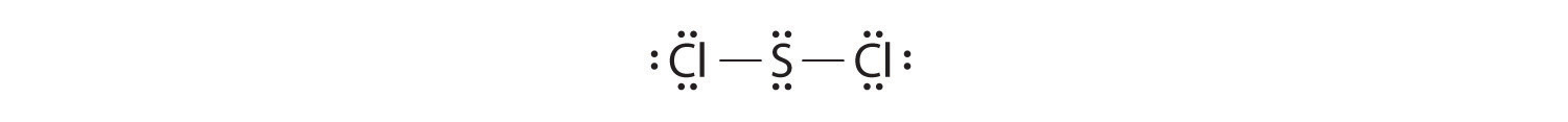 Because nitrogen is less electronegative than oxygen or chlorine, it is the central atom. The N atom (group 15) has 5 valence electrons, the O atom (group 16) has 6 valence electrons, and the Cl atom (group 17) has 7 valence electrons, giving a total of 18 valence electrons. Placing one bonding pair of electrons between each pair of bonded atoms uses 4 electrons and gives the following: