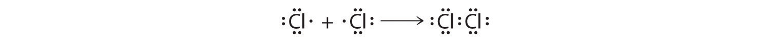 The valence electron configurations of the constituent atoms of a covalent compound are important factors in determining its structure, stoichiometry, and properties. For example, chlorine, with seven valence electrons, is one electron short of an octet. If two chlorine atoms share their unpaired electrons by making a covalent bond and forming Cl2, they can each complete their valence shell:
