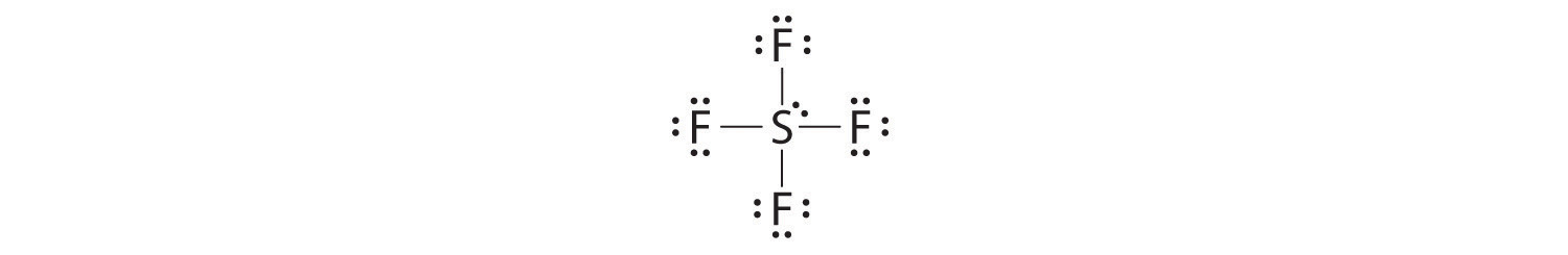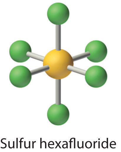 Let’s look at sulfur hexafluoride (SF6), whose Lewis structure must accommodate a total of 48 valence electrons [6 + (6 × 7) = 48]. If we arrange the atoms and electrons symmetrically, we obtain a structure with six bonds to sulfur; that is, it is six-coordinate. Each fluorine atom has an octet, but the sulfur atom has 12 electrons surrounding it rather than 8.The third step in our procedure for writing Lewis electron structures, in which we place an electron pair between each pair of bonded atoms, requires that an atom have more than 8 electrons whenever it is bonded to more than 4 other atoms.