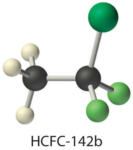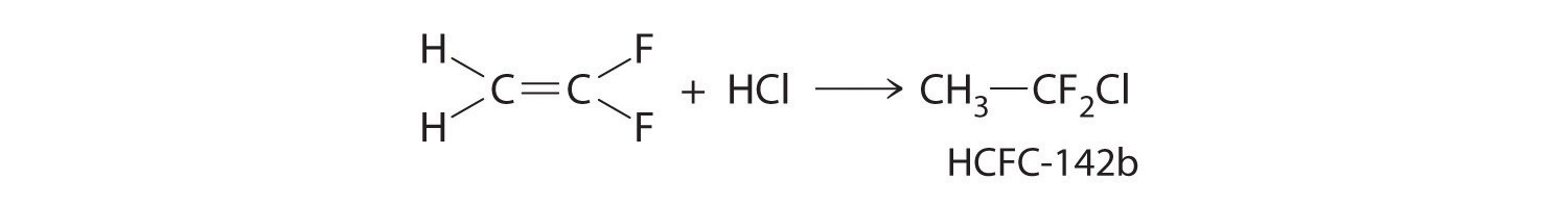 The molecule HCFC-142b, a hydrochlorofluorocarbon used in place of chlorofluorocarbons (CFCs) such as the Freons, can be prepared by adding HCl to 1,1-difluoroethylene: