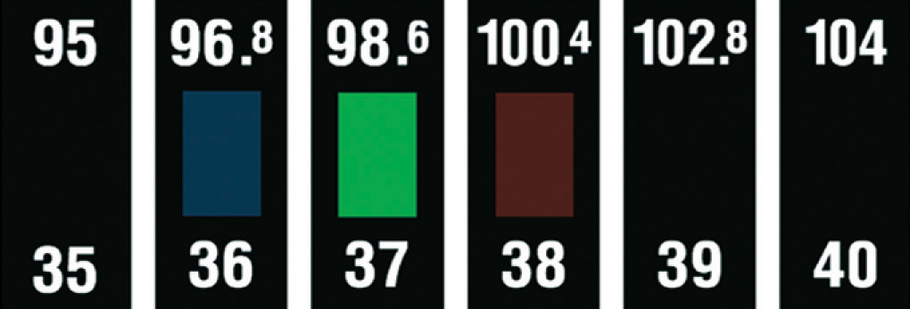 Figure 11.29 An Inexpensive Fever Thermometer That Uses Liquid Crystals