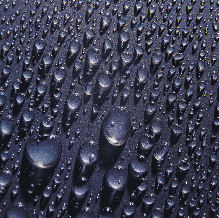 Water beading up on the surface of a freshly waxed car. The waxed, nonpolar surface does not interact strongly with the polar water molecules. The absence of attractive interactions causes the water to form round beads.
