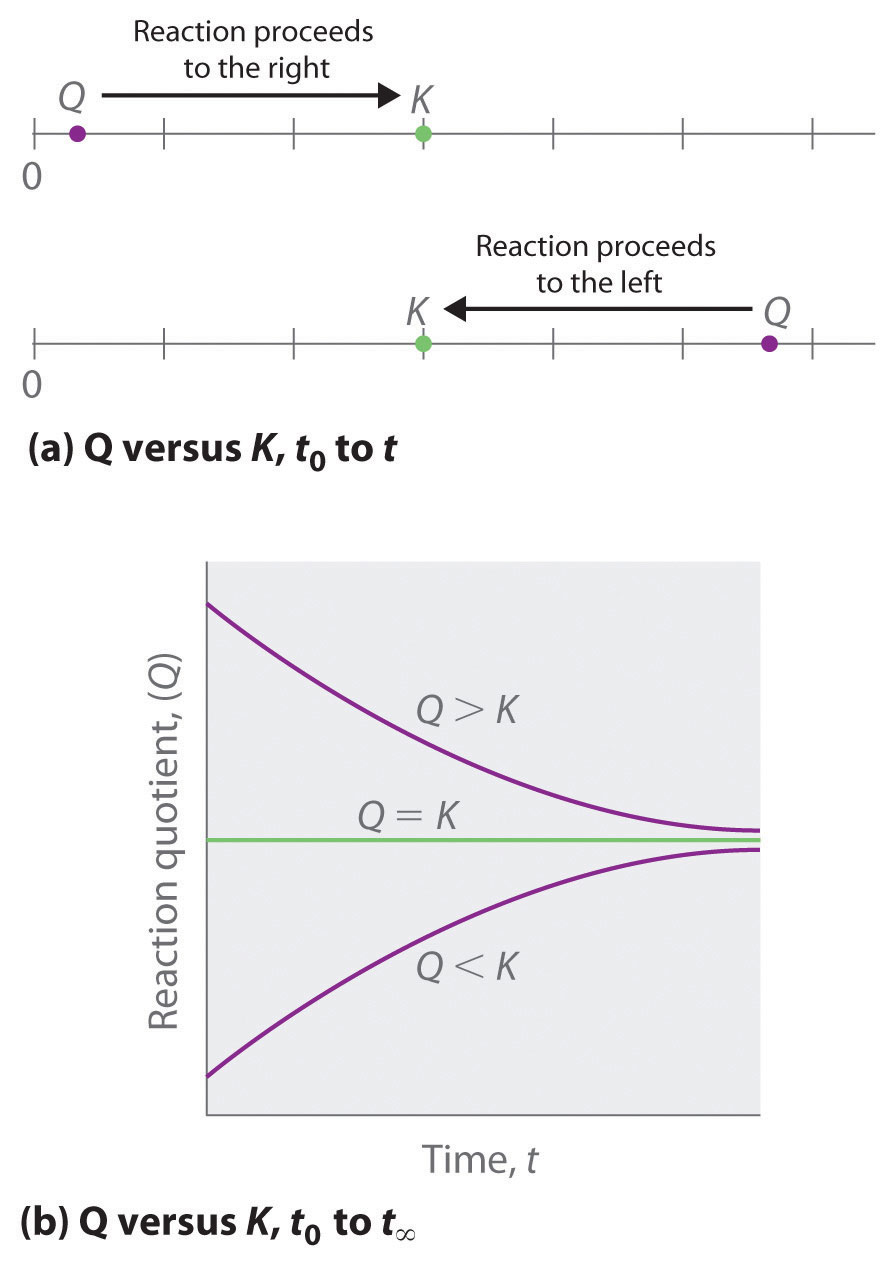 How can the ratio Q/K be used to determine in which direction a reaction will proceed to reach equilibrium?