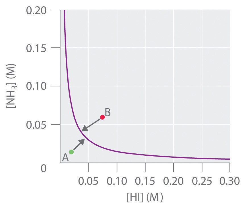 In Chapter 14 "Chemical Kinetics", we discussed the principles of chemical kinetics, which deal with the rate of change, or how quickly a given chemical reaction occurs. We now turn our attention to the extent to which a reaction occurs and how reaction conditions affect the final concentrations of reactants and products. For most of the reactions that we have discussed so far, you may have assumed that once reactants are converted to products, they are likely to remain that way. In fact, however, virtually all chemical reactions are reversible to some extent. That is, an opposing reaction occurs in which the products react, to a greater or lesser degree, to re-form the reactants. Eventually, the forward and reverse reaction rates become the same, and the system reaches chemical equilibriumThe point at which the forward and reverse reaction rates become the same so that the net composition of the system no longer changes with time., the point at which the composition of the system no longer changes with time.