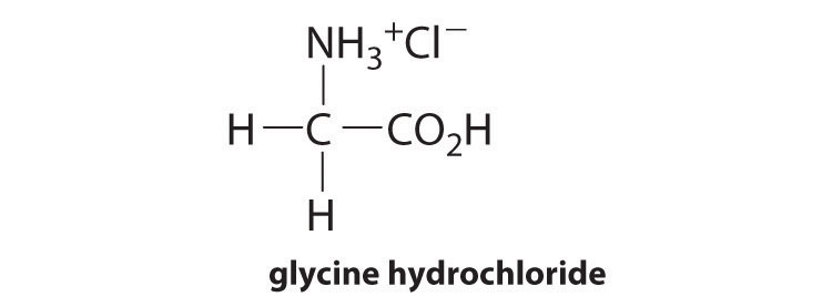 Glycine hydrochloride, which contains the fully protonated form of the amino acid glycine, has the following structure: