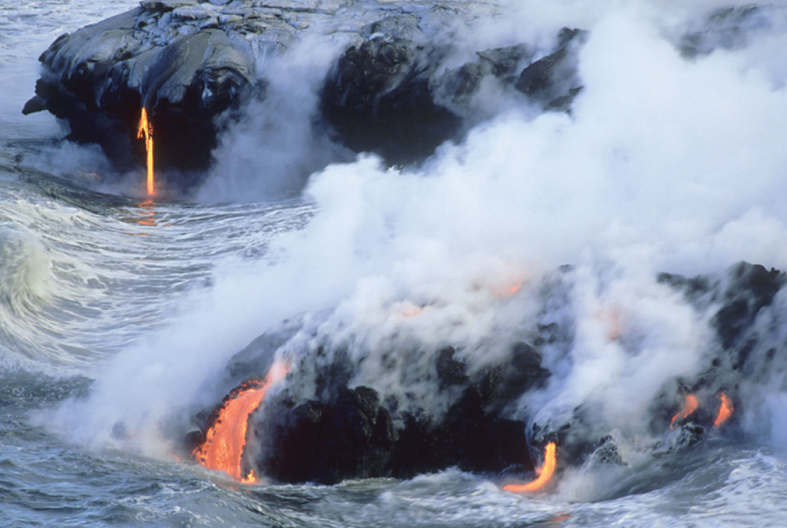 When molten lava flows into cold ocean water, so much heat is spontaneously transferred to the water that steam is produced.