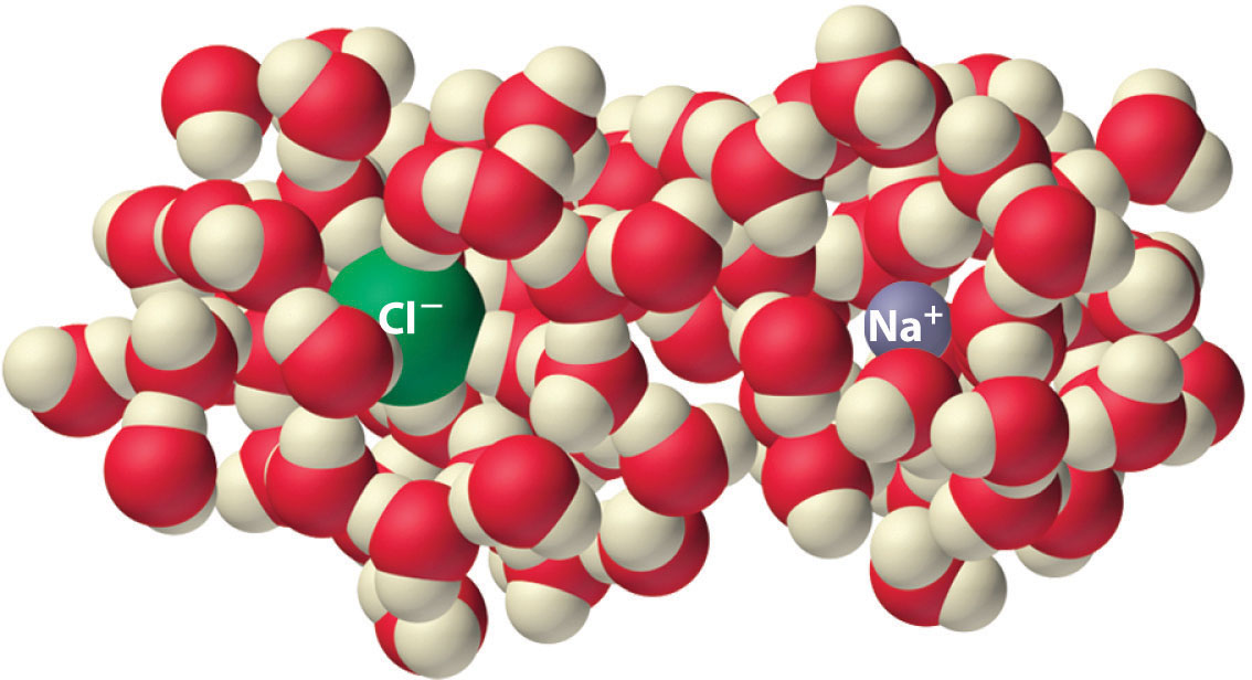 Dissolving NaCl in water results in an increase in the entropy of the system. Each hydrated ion, however, forms an ordered arrangement with water molecules, which decreases the entropy of the system. The magnitude of the increase is greater than the magnitude of the decrease, so the overall entropy change for the formation of an NaCl solution is positive.