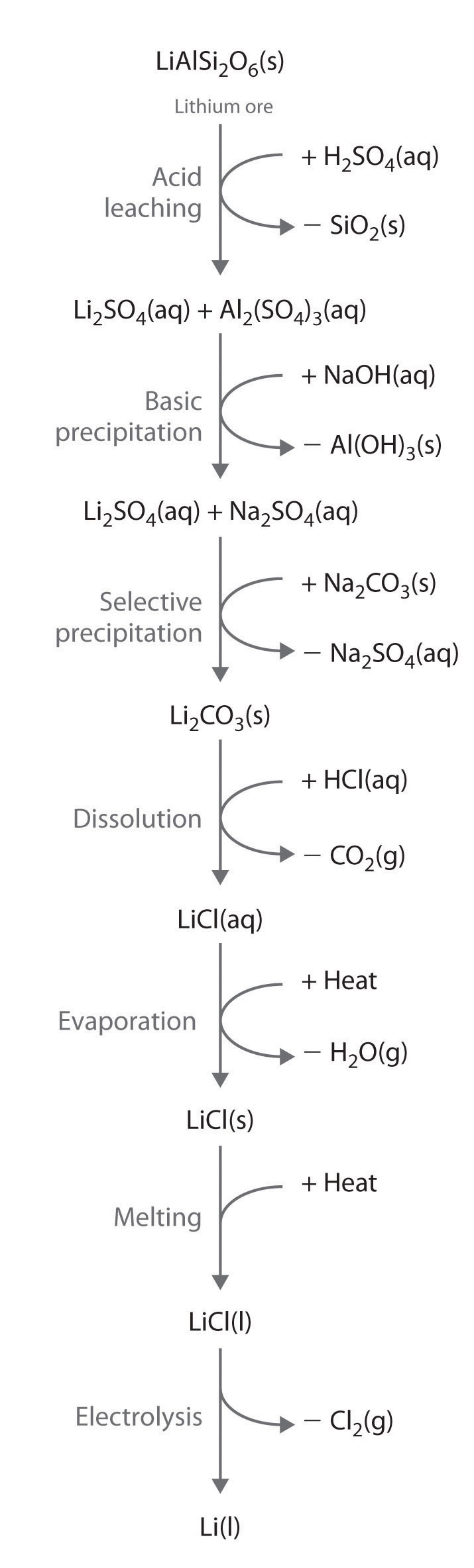Figure 21.7 Isolating Lithium from Spodumene, a Lithium Silicate Ore