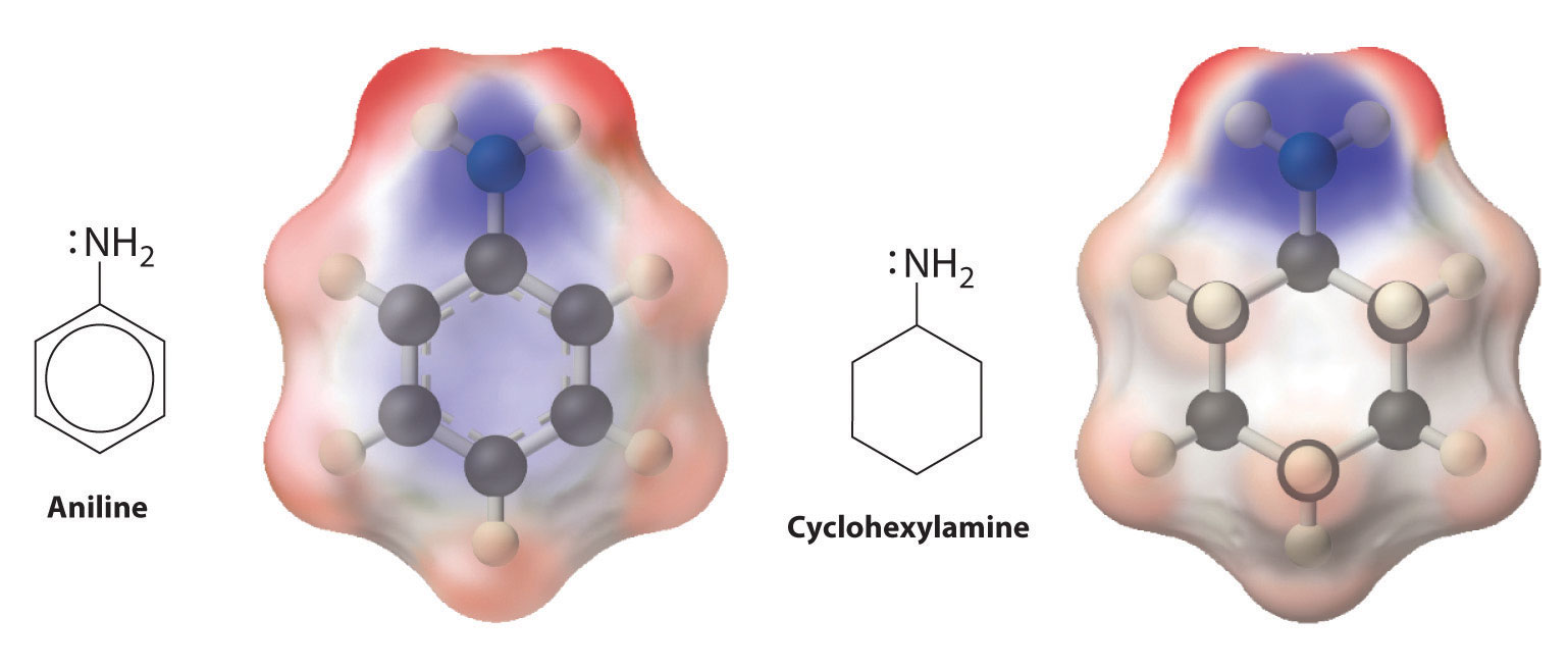 Figure 24.20 Structures and Basicity of Aniline and Cyclohexylamine
