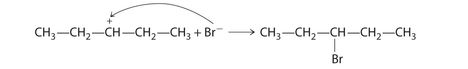 The bromide ion is a good nucleophile that can react with the carbocation to give an alkyl bromide: