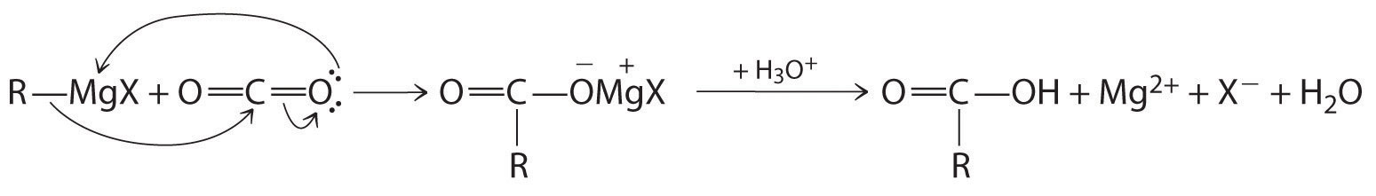 Carboxylic acids are typically prepared by oxidizing the corresponding alcohols and aldehydes (part (a) in Figure 24.14 "The Oxidation State of Carbon in Oxygen- and Nitrogen-Containing Functional Groups"). They can also be prepared by reacting a Grignard reagent with CO2, followed by acidification: