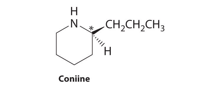 Coniine is a naturally occurring compound with insect-paralyzing properties. Ingestion of this compound causes weakness, vomiting, labored respiration, and eventual death. Does coniine have a chiral carbon? If so, indicate the carbon with an asterisk.