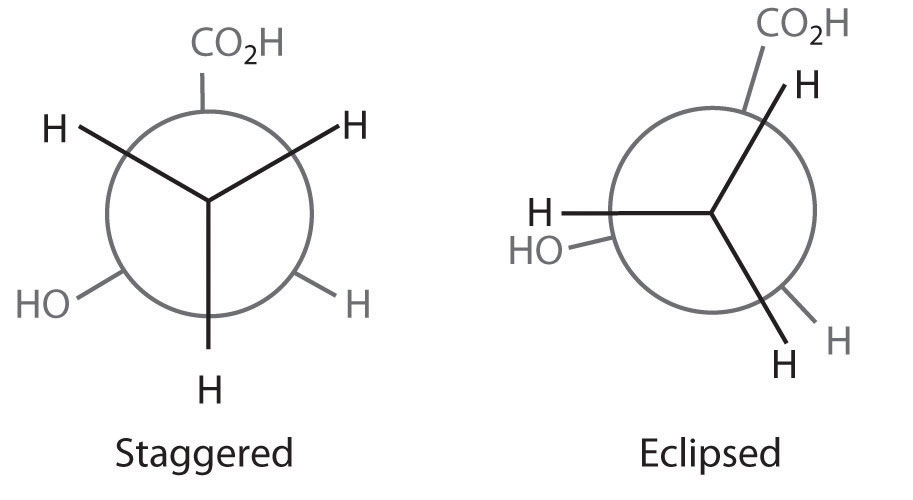 After exercise, the concentration of lactic acid increases in both muscle tissue and blood. In fact, it is responsible for muscle cramps that may develop after vigorous exercise. Using the structure of lactic acid shown here, draw the conformational isomers of lactic acid as viewed along the C2–C3 axis, where C3 is the carbon of the methyl group. Which would you predict to be the most stable conformation? Why?